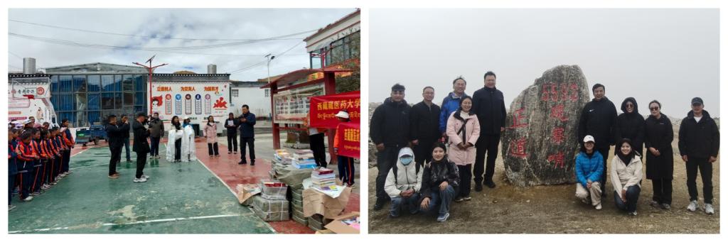 系列活动第一站:“藏医药文化边疆行”-走进岗巴县。9月15日-16日,到达岗巴县开展活动。一是关爱群众健康。我校医疗团队赴岗巴县龙中乡卫生院,开展送医送药及义诊活动。现场前来咨询与就诊的群众络绎不绝,医疗团队以专业医术守护村民健康。此次活动还为村民们免费发放了价值3万元的常用药品。二是慰问边防部队。我校医疗团队为边防官兵进行了送医送药和义诊活动,并提供专业康复建议与保健指导。藏医药文化宣讲团的学生代表以曼唐为载体,生动阐释了藏医药文化,同时讲述以抗美援朝精神为核心的红色故事,激发了官兵们的爱国热情与使命感。三是助力乡村教育。边巴次仁一行代表学校向龙中乡小学捐赠了价值2万元的各类书籍。藏医药文化宣讲团的学生代表还走进课堂,与小学生开展藏医药文化交流互动。