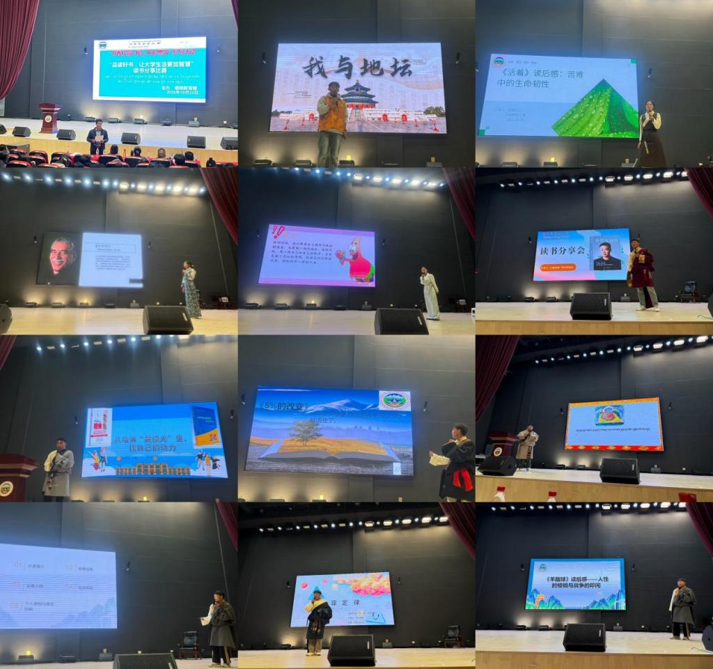 决赛现场,气氛庄重而热烈。比赛由继续教育部扎西次仁副书记主持。在比赛中,12名选手依次登台,围绕他们所品读的经典好书,结合自身的学习生活、人生理想与社会观察,进行了内容丰富、情感真挚的分享。选手们的分享不仅是对书籍内容的复述,更是内化于心、外化于行的智慧结晶,为现场师生呈现了一场精彩的思想与文化盛宴。